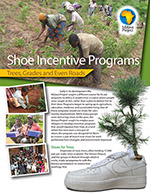In an effort to help the people of Malawi get on their feet with programs that reward creativeness and accomplishment the Program has delivered over 80,000 pairs of shoes to be used in programs where local villagers plant tree seedings and children improve school grades and are given new shoes as a reward for their efforts.