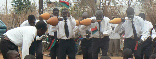 This Mganda group was captured as it entertained people when a hospital was receiving a donation of medical supplies from the Malawi Project.