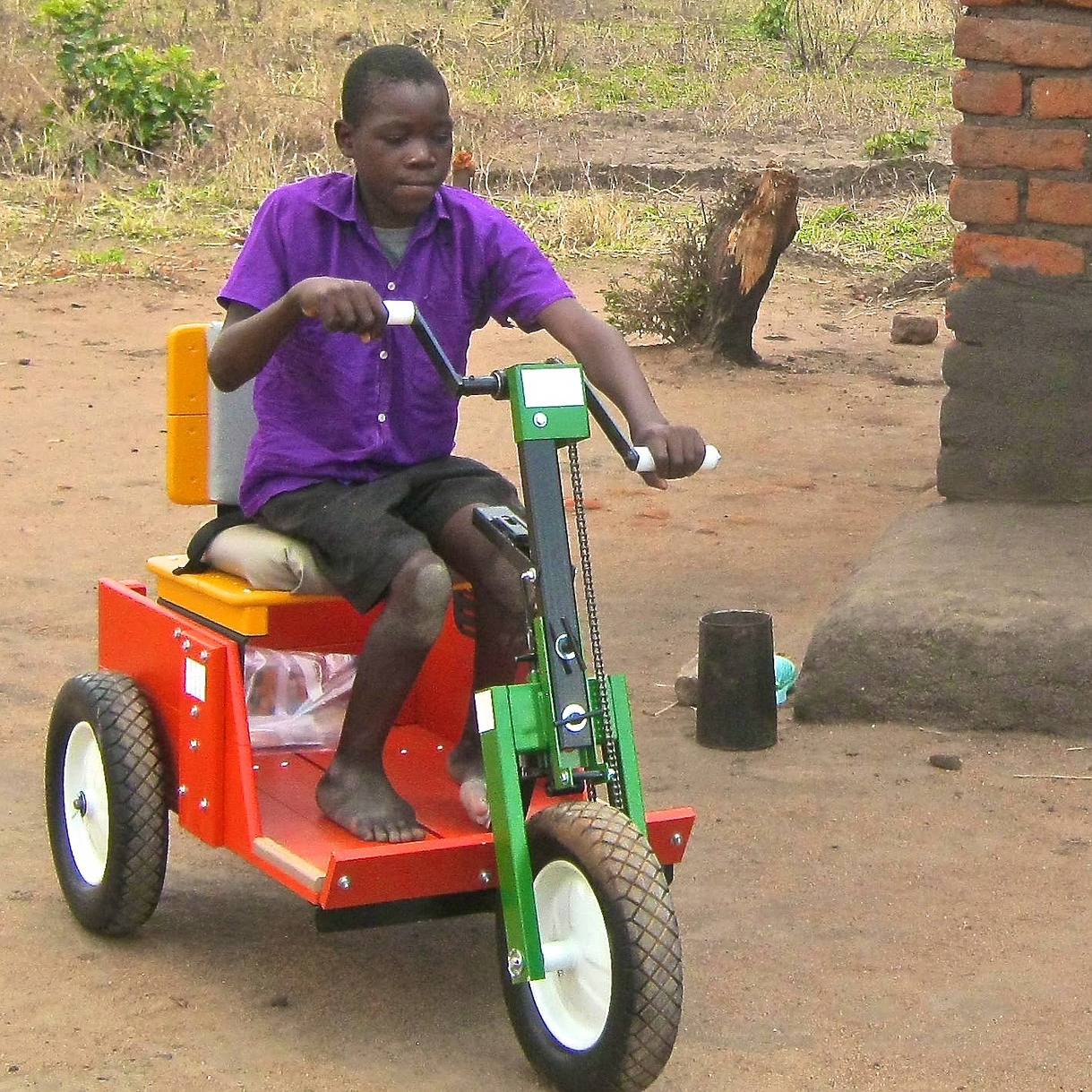 The mobility unit adds a dimension that has gone unanswered earlier; that is, the ability of the person to transport goods in the unit, as well as being able to move themselves long distances without aid for another person. The three wheel units come with a wide array of replacement parts, and have an expected life of 10-years or more. Shipments are sent directly the production line in the Demotte plant, and arrive in Malawi ready to assemble and put into use. These units make it easier for the recipient to pursue their career, and to recognize a much higher degree of independence.